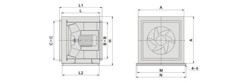 HLF系列低噪聲混流式風機箱,內(nèi)裝SWF系列高效低噪聲混流風機,組合式箱體柜架設消音隔熱圍板,進出分口與通風管法蘭連接方便,具有明顯的噪聲低、效率高、重量輕、外形美觀、安裝簡單(落地、吊裝均可),維修保養(yǎng)簡單等優(yōu)點。進風口加設過濾網(wǎng),可作凈化送風箱用。 二、型號說明 ![]() 三、性能參數(shù)表 風機選用SWF系列風機,性能參數(shù)依照SWF系列風機中同型號的性能參數(shù)。 四、HLF型風機外形尺寸(單位:mm)