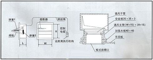 安裝在走道或防煙前室,無窗房間的排煙系統的排煙口處,可以吊裝在天花板上或安裝在側墻。